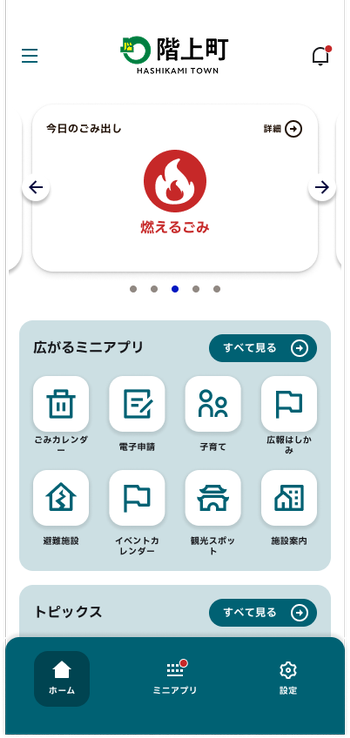 階上町公式スーパーアプリとは、町からのお知らせや防災情報、ごみの収集日などを1つのアプリで分かりやすく確認できるアプリです。