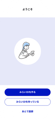 (7)「みらいIDを作る」をタップし、お名前、メールアドレス、パスワードを登録します。 ※認証メールが届きます。