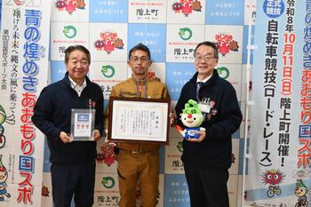 青の煌めきあおもり国スポ開催にあたり、株式会社成商クリーンサービス様よりゴミ回収用コンテナ設置のご協賛をいただき、11月21日に感謝状贈呈式を行いました。